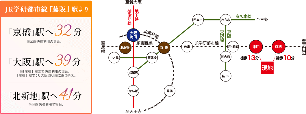 徒歩10分圏内にJR学研都市線「藤阪」駅や教育施設、生活施設が充実した十分すぎる利便性も魅力です。大きな公園やスポーツジムなども近くにあるので生き生きとした健康的な暮らしが可能です。